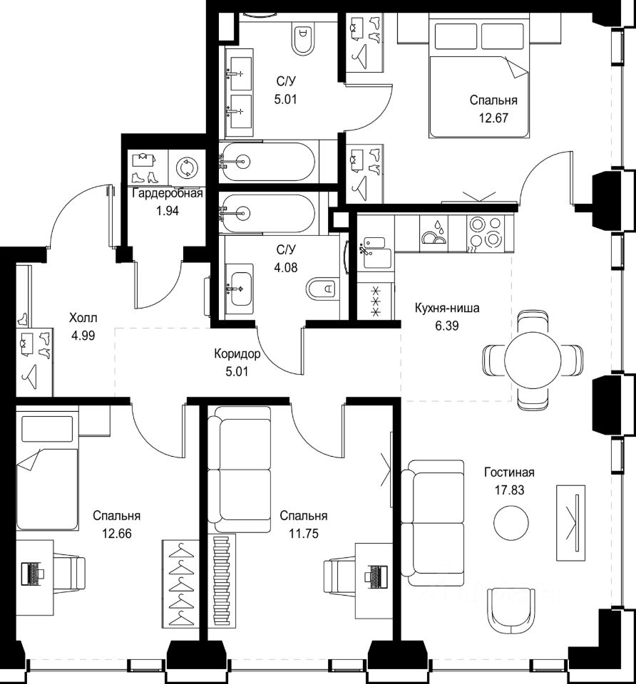 В ЖК SET продается 3-комнатная квартира площадью 82.33 м², расположенная в корпусе Б, на 28 этаже 59 этажного дома.