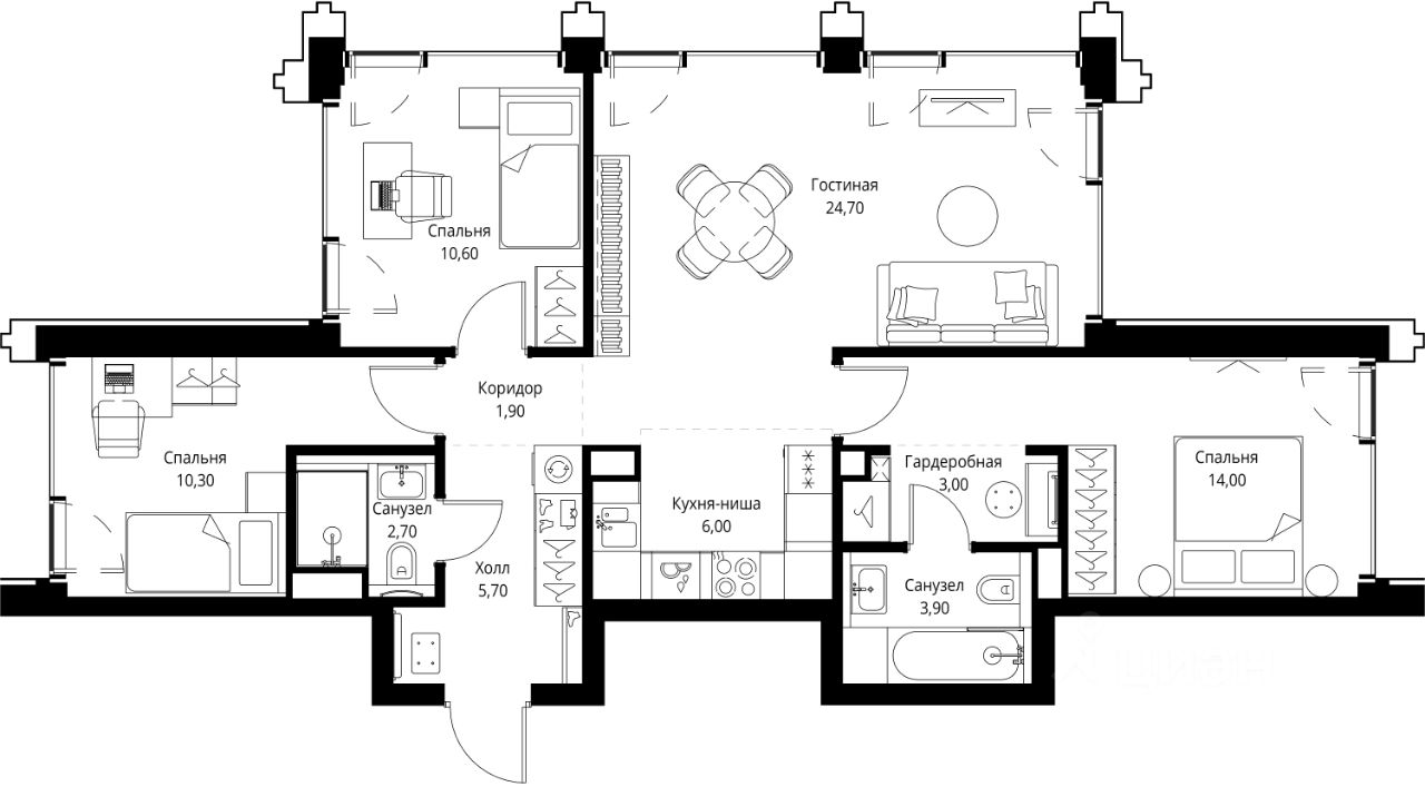 В ЖК SET продается 3-комнатная квартира площадью 82.80 м², расположенная в корпусе 2, на 56 этаже 59 этажного дома.