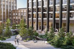 Двор разделен на 4 зоны разных эмоций и действий, которые пересечены и соединены веерными прогулочными маршрутами: