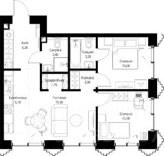 В ЖК SET продается 2-комнатная квартира площадью 58.80 м², расположенная в корпусе 2, на 3 этаже 59 этажного дома.
