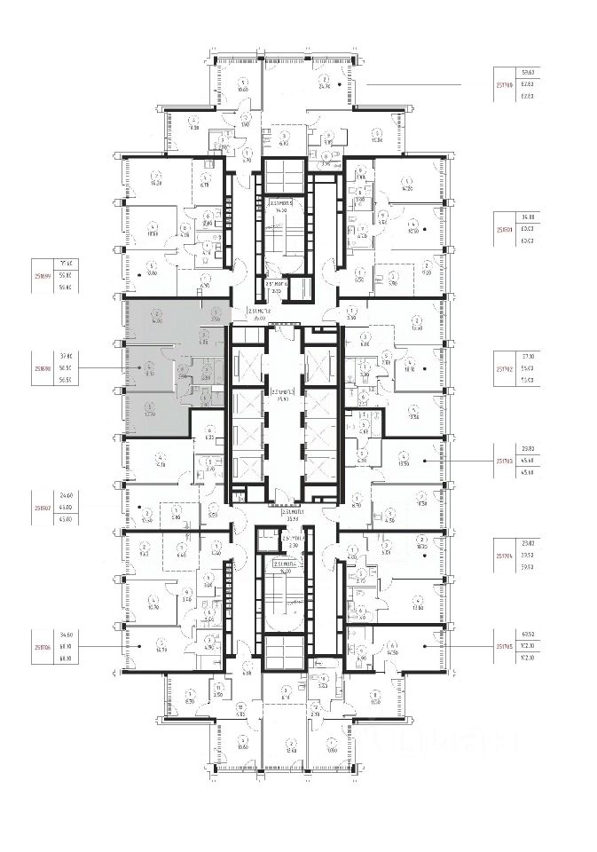 В ЖК Сет продается 2-комнатная квартира площадью 56.50 м², расположенная в корпусе 2, на 51 этаже 59 этажного дома.