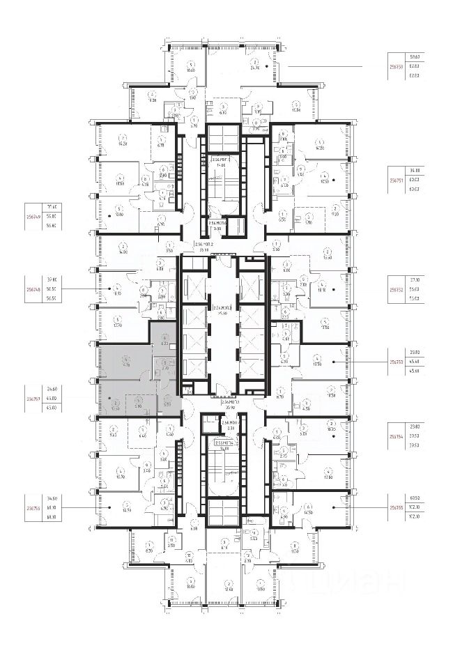 В ЖК Сет продается 1-комнатная квартира площадью 45 м², расположенная в корпусе 2, на 56 этаже 59 этажного дома.
