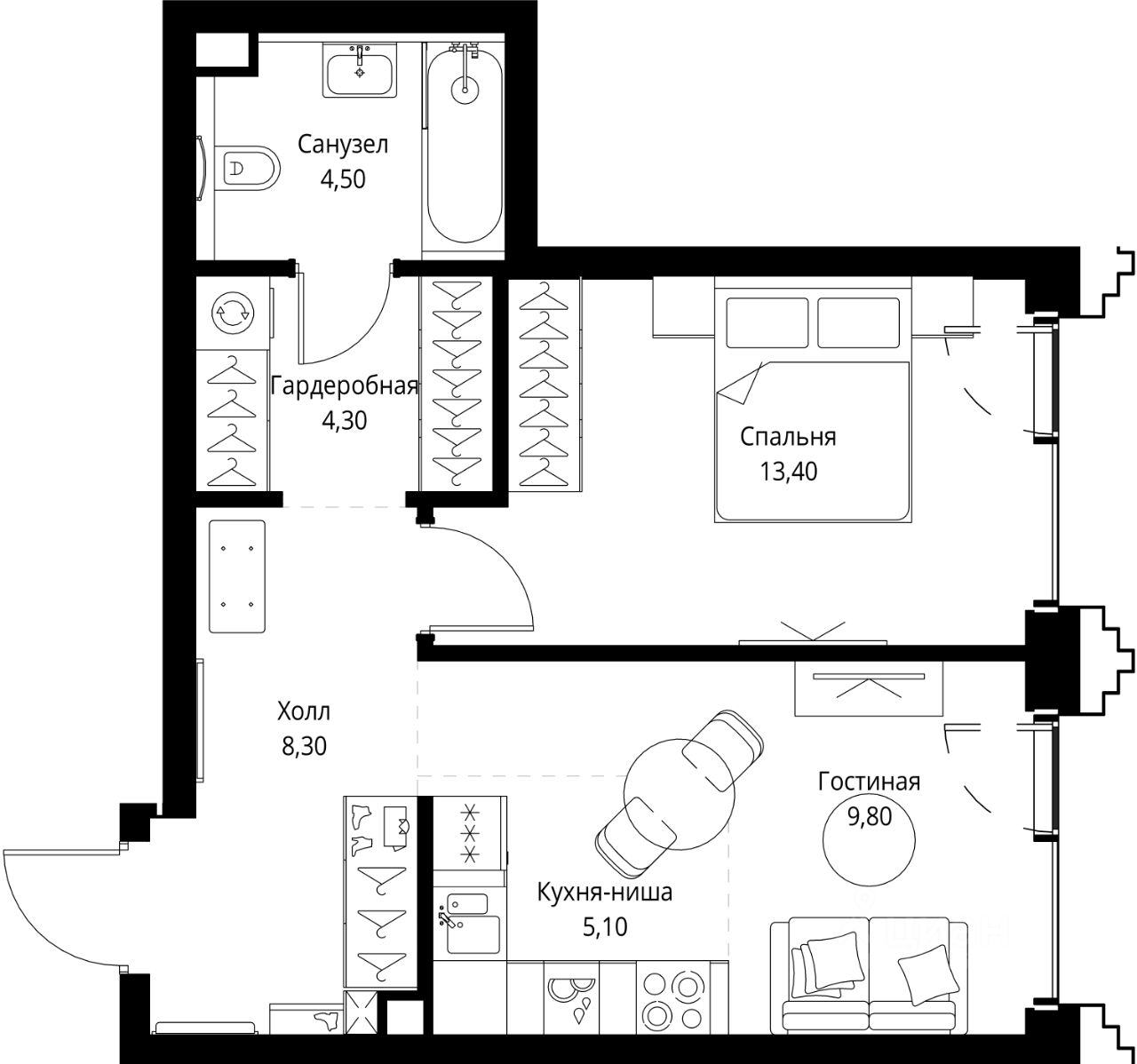 В ЖК SET продается 1-комнатная квартира площадью 45.40 м², расположенная в корпусе 2, на 49 этаже 59 этажного дома.