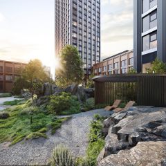 • ""Центральная площадь"" устроена у водного оазиса живописного пруда.