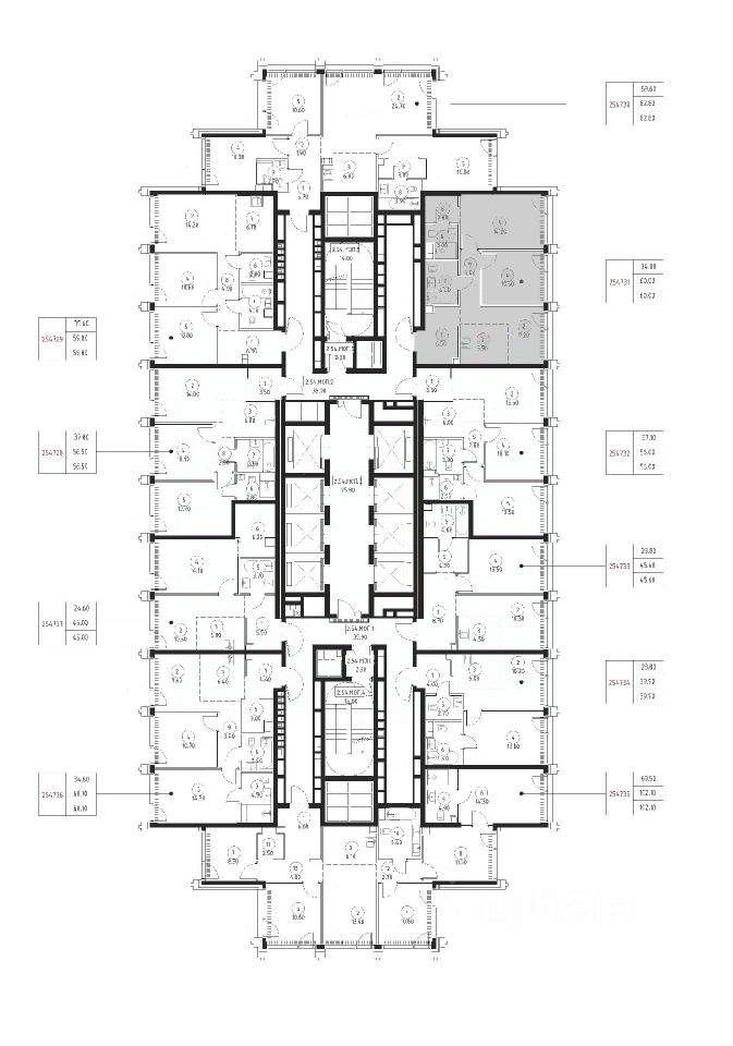 В ЖК SET продается 2-комнатная квартира площадью 60 м², расположенная в корпусе 2, на 54 этаже 59 этажного дома.