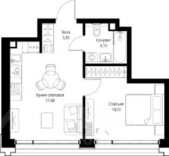 В ЖК SET продается 1-комнатная квартира площадью 39.20 м², расположенная в корпусе 1, на 3 этаже 18 этажного дома.