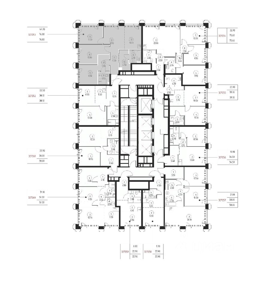 В ЖК SET продается 3-комнатная квартира площадью 76.80 м², расположенная в корпусе 3, на 27 этаже 45 этажного дома.