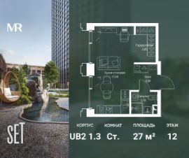 В ЖК SET продается студия площадью 27 м², расположенная в корпусе 3, на 12 этаже 45 этажного дома.