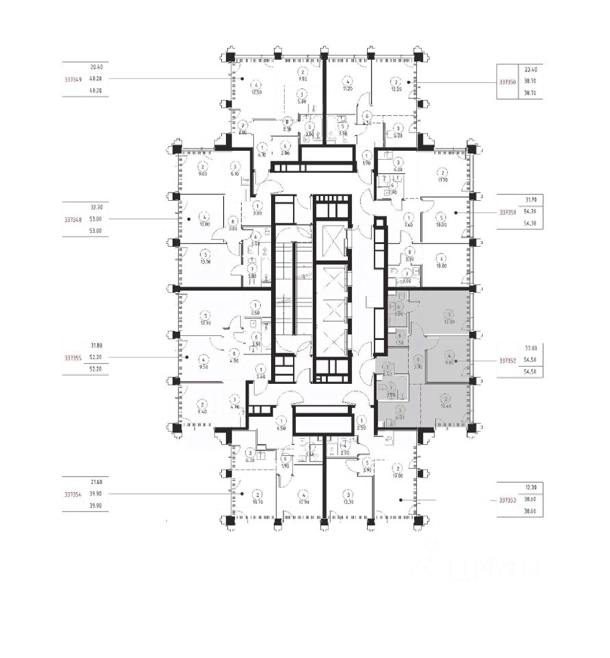 В ЖК SET продается 2-комнатная квартира площадью 54.50 м², расположенная в корпусе 3, на 37 этаже 45 этажного дома.