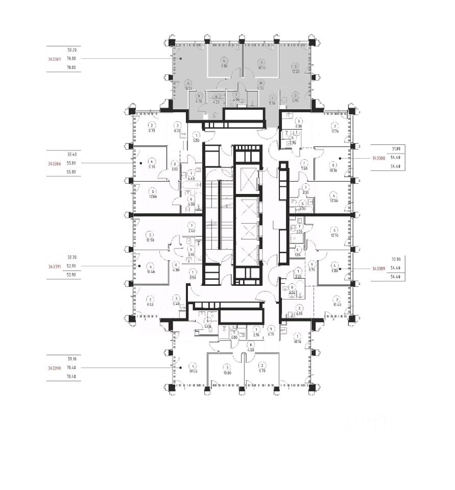 В ЖК Сет продается 3-комнатная квартира площадью 79.30 м², расположенная в корпусе 3, на 43 этаже 45 этажного дома.