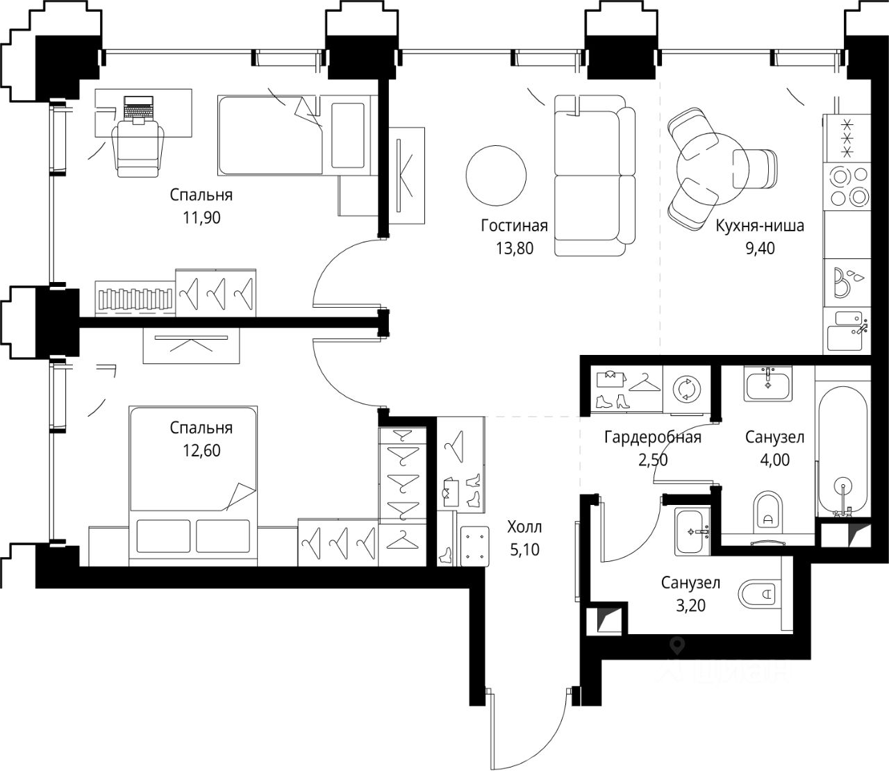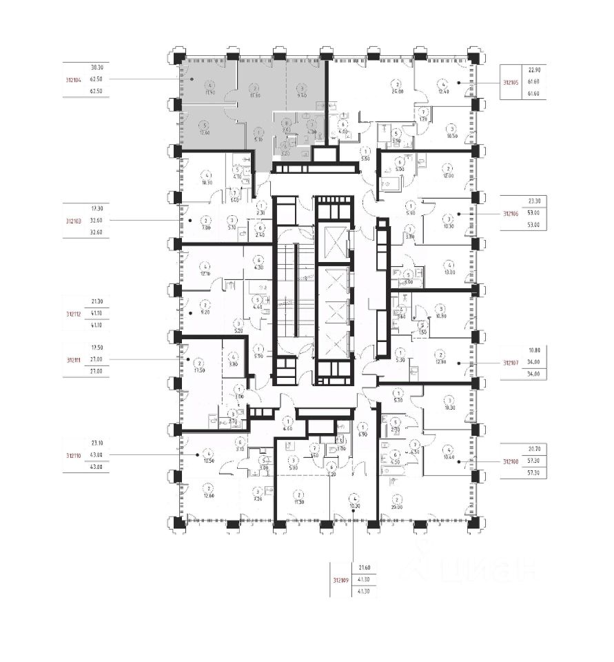 В ЖК SET продается 2-комнатная квартира площадью 62.50 м², расположенная в корпусе 3, на 12 этаже 45 этажного дома.