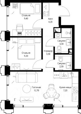 В ЖК SET продается 2-комнатная квартира площадью 51.30 м², расположенная в корпусе 3, на 24 этаже 45 этажного дома.