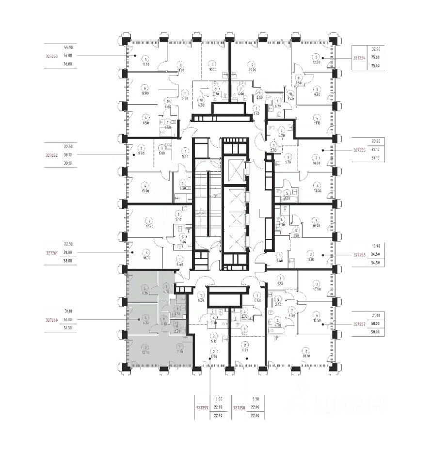 В ЖК SET продается 2-комнатная квартира площадью 51.30 м², расположенная в корпусе 3, на 27 этаже 45 этажного дома.