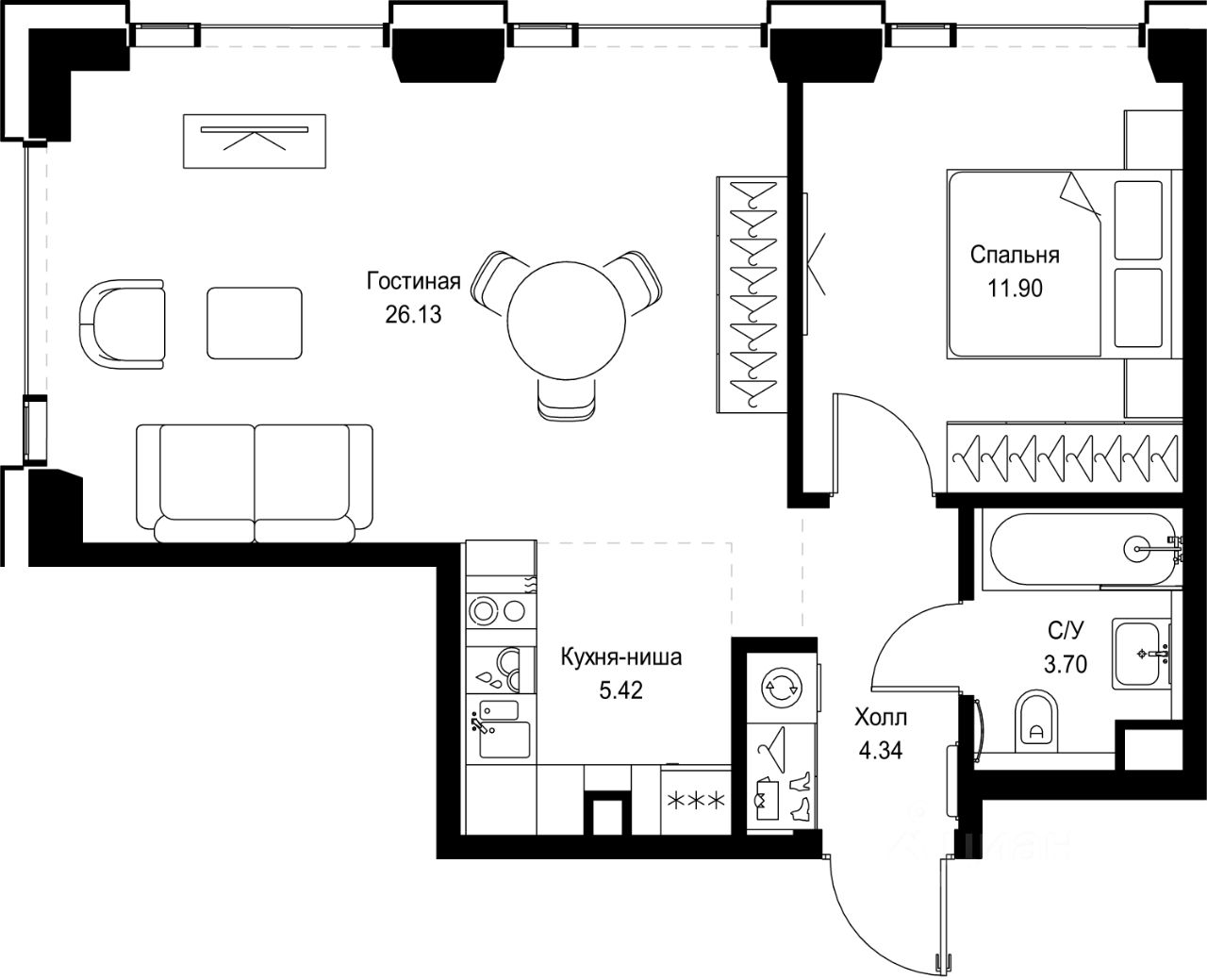 В ЖК SET продается 1-комнатная квартира площадью 51.49 м², расположенная в корпусе А, на 23 этаже 52 этажного дома.