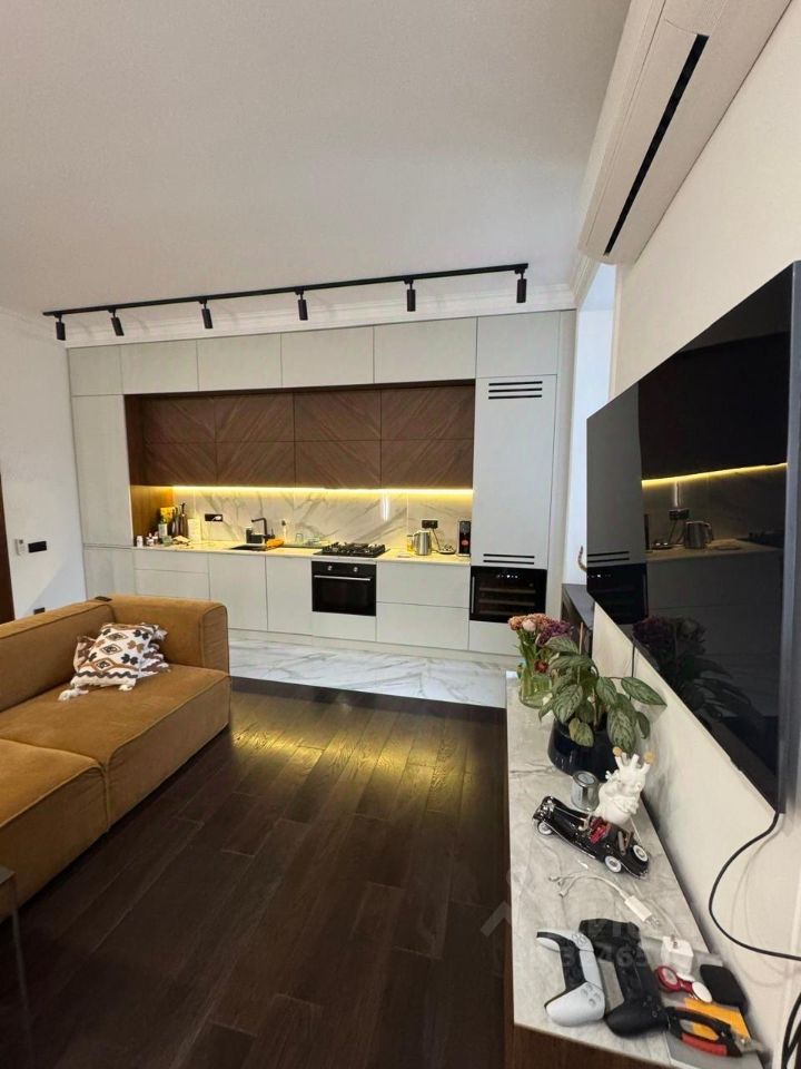 В квартире сделан дизайнерский ремонт, который порадует вас стильным оформлением и качественными материалами. Просторная кухня позволяет не только готовить, но и собираться всей семьей за обедом. Планировка удобная и функциональная, окна выходят во двор, поэтому в квартире всегда тихо и комфортно. В квартире есть один совмещенный и один отдельный санузел, что особенно удобно для семьи.