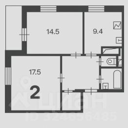• Гостиная 17,5 м² и спальня 14,5 м²
