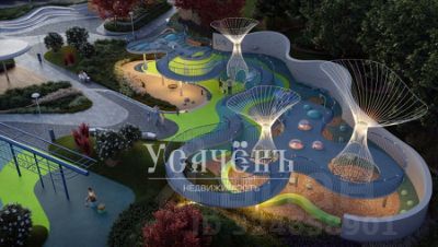 Концепция — гармоничное сочетание природы и технологий. На территории предусмотрены: