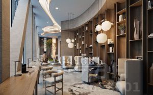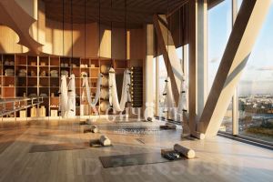На мосту между башнями (22 й этаж) расположен SocialHUB — пространство с 16 комфортными зонами для:
