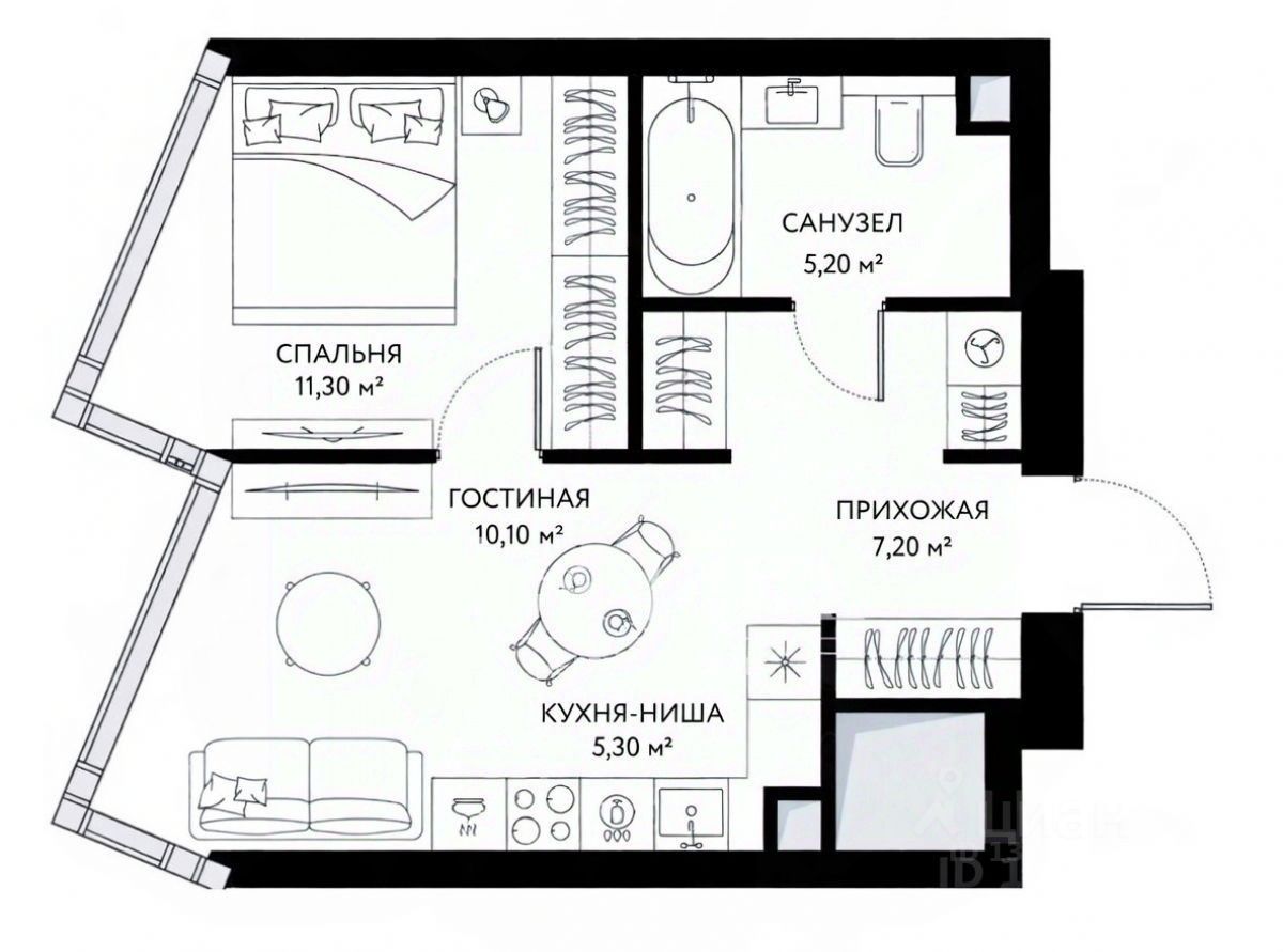 площадь: 39 м2;