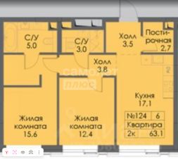 Квартиpа площадью 63.1 кв.м., коpпус 3, cекция 1