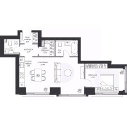 Предлагается готовая просторная 1-комнатная квартира 60,1 м² с отделкой white box на 4 этаже в проекте hide жилом небоскребе премиум-класса от компании Dominanta и MR.