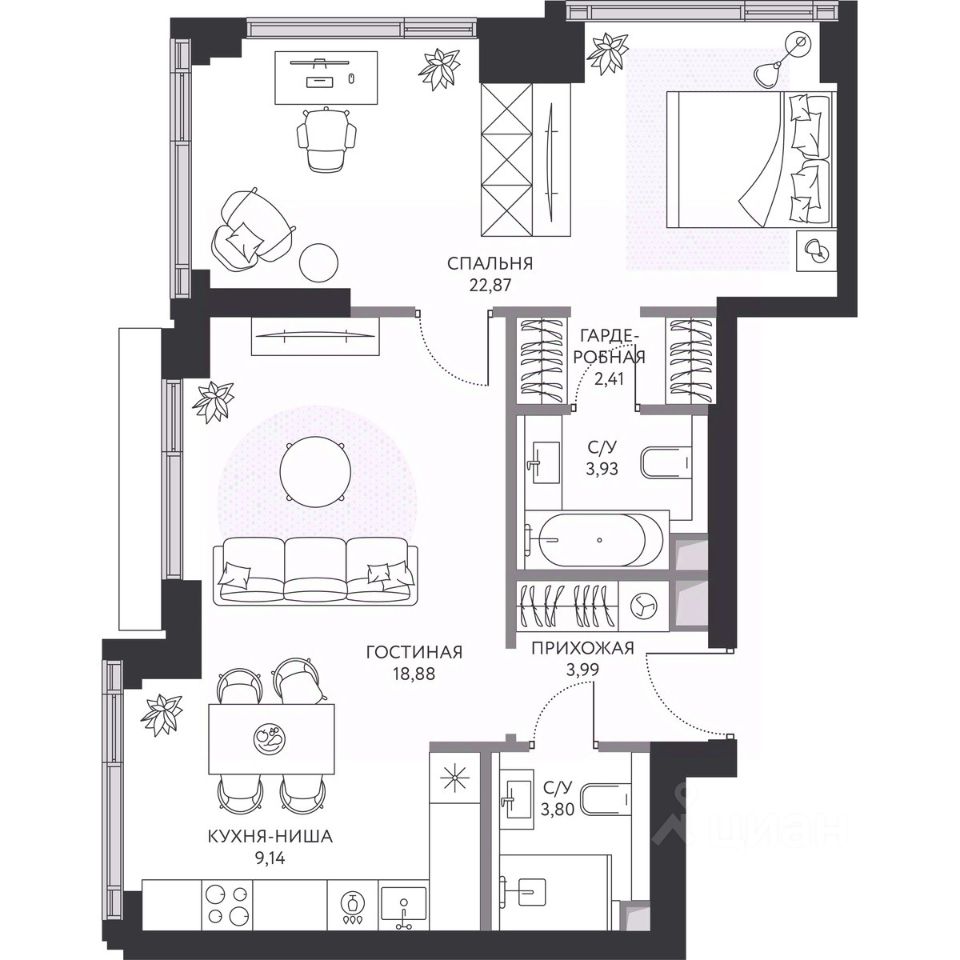 Эргономичную планировку с кухней - гостиной дополняет панорамное остекление от пола до потолка и интегрированная система "Умный дом". Это жилье нового поколения, в котором сочетаются впечатляющая архитектура, высочайший комфорт и отличное расположение на границе районов Раменки и Хамовники. Ваша жизнь будет дополнена продуманными общественными пространствами Life Space: от переговорных и библиотеки в центральном гранд-лобби до массажного кабинета и пространства для спорта. Более 50% закрытого двора занимает ландшафтный парк с искусственными холмами и "парящими" мостами. За несколько минут можно добраться до ТТК, Кутузовского проспекта или делового центра "Москва-Сити", при этом проект интегрирован в зеленую зону с природными заказниками Долина реки Сетунь и Воробьевы горы идеальное сочетание динамики мегаполиса и природы.
