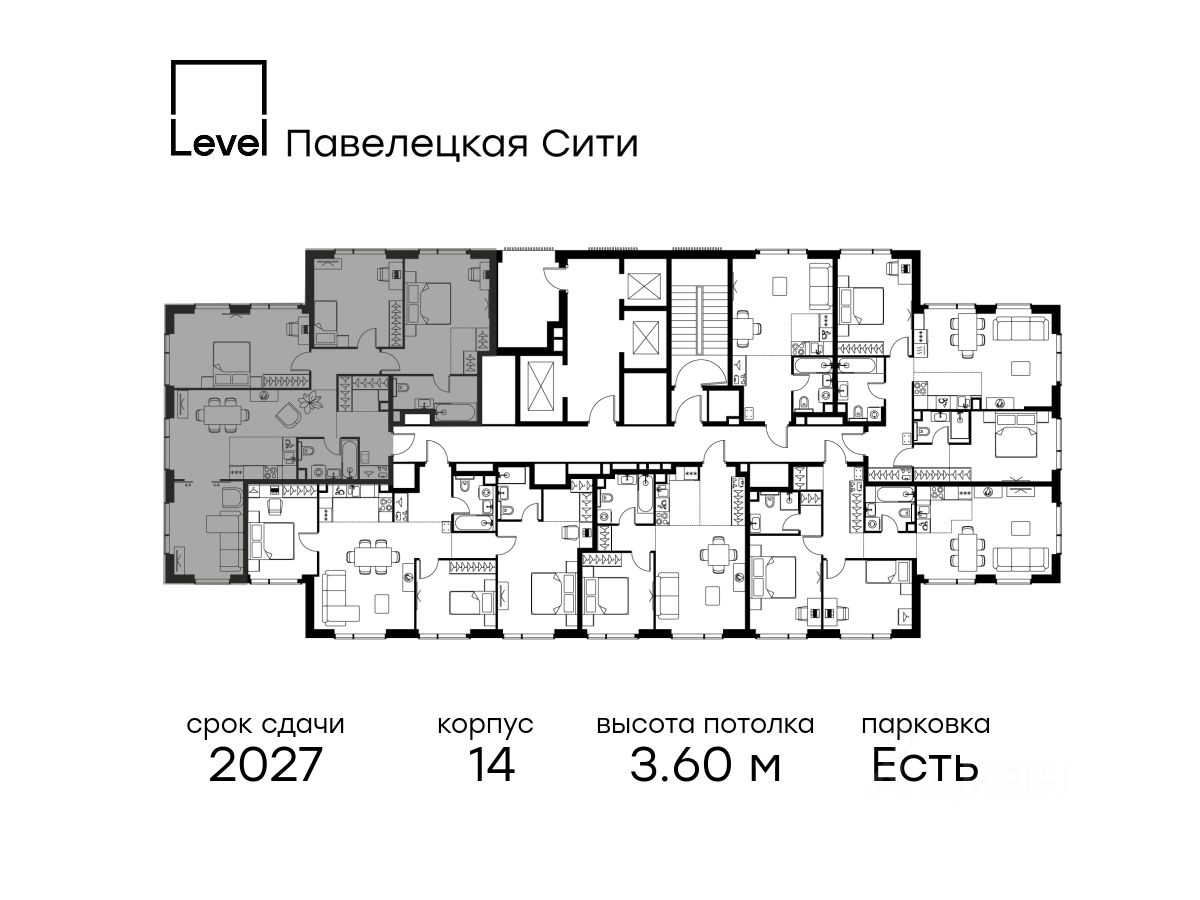 В Даниловском районе столицы (ЮАО) продаётся многокомнатная квартира площадью 114.50 кв.м без отделки. Квартира расположена на 27 этаже 27-этажного корпуса 'Горизонт' в жилом комплексе бизнес-класса Level Павелецкая Сити. Высота потолков 3.60м.