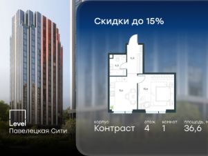В Даниловском районе столицы (ЮАО) продаётся 1-комнатная квартира площадью 36.60 кв.м без отделки. Квартира расположена на 4 этаже 27-этажного корпуса 'Горизонт' в жилом комплексе бизнес-класса Level Павелецкая Сити. Высота потолков 3.00м.
