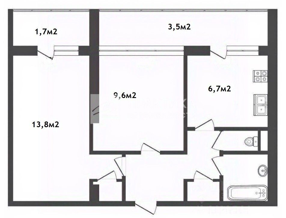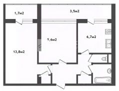 • планировка: 2 изолированные комнаты (13,8м2 и 9,6м2) + кухня;