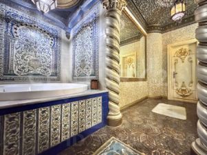 Отделка: элитные материалы (мрамор, ценные породы дерева, керамогранит, шелк, кожа).