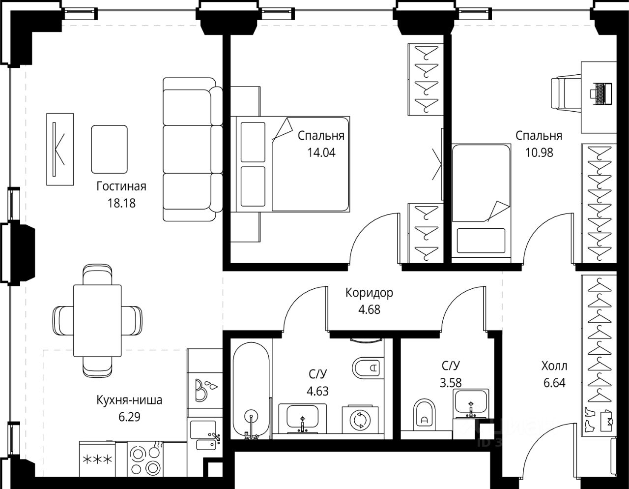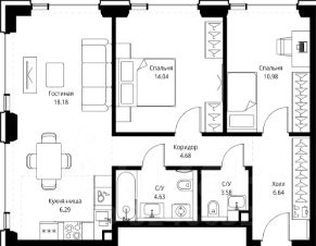 В ЖК Сет продается 2-комнатная квартира площадью 69.02 м², расположенная в корпусе С, на 22 этаже 28 этажного дома.