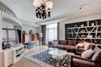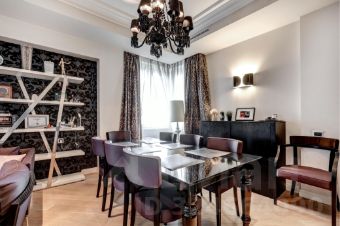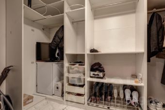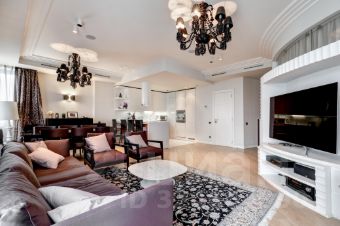 Планировкой предусмотрено: кухня-гостиная с эркерной зоной и выходом на балкон, три спальные комнаты, ванная комната с сауной, холл с вместительной гардеробной, гостевой санузел, постирочная, прихожая. В каждой комнате предусмотрены места для хранения. Квартира оборудована кондиционерами.