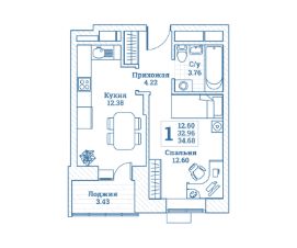 Общая площадь34,68 м²