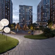 На придомовой территории предусмотрена все необходимое для комфортного проживания: магазины, кафе, фитнес-центры, а также зоны для отдыха, спортивные и детские площадки.