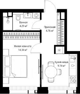 Продаётся 1-комнатная квартира общей площадью 33.13 м² без отделки в ЖК VEER на 9-м этаже 25 этажного дома.