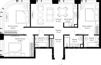 Продаётся 3-комнатная квартира общей площадью 92.01 м² без отделки в ЖК VEER на 21-м этаже 25 этажного дома.