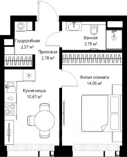 Продаётся 1-комнатная квартира общей площадью 33.86 м² без отделки в ЖК VEER на 15-м этаже 25 этажного дома.