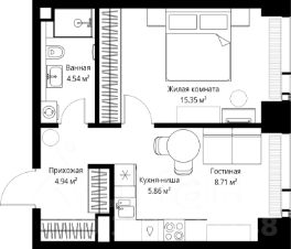 Продаётся 1-комнатная квартира общей площадью 39.40 м² без отделки в ЖК VEER на 30-м этаже 70 этажного дома.