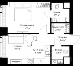 Продаётся 1-комнатная квартира общей площадью 42.42 м² без отделки в ЖК Веер на 36-м этаже 70 этажного дома.