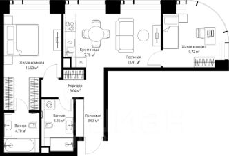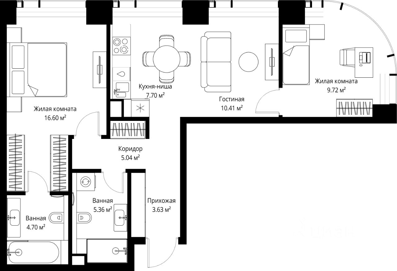 Продаётся 2-комнатная квартира общей площадью 63.16 м² без отделки в ЖК VEER на 21-м этаже 70 этажного дома.