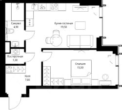 Продаётся 1-комнатная квартира общей площадью 48.50 м² без отделки в ЖК VEER на 3-м этаже 59 этажного дома.