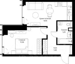 Продаётся 1-комнатная квартира общей площадью 45.60 м² без отделки в ЖК VEER на 33-м этаже 59 этажного дома.