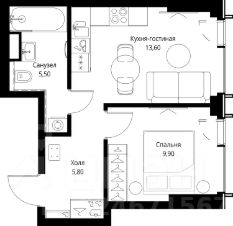 Продаётся 1-комнатная квартира общей площадью 34.80 м² без отделки в ЖК VEER на 33-м этаже 59 этажного дома.