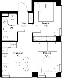 Продаётся 1-комнатная квартира общей площадью 39.60 м² с предчистовой отделкой в ЖК VEER на 2-м этаже 22 этажного дома.