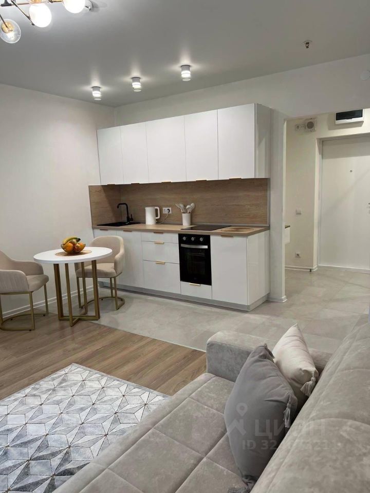 Продаются апартаменты студийной планировки в новом состоянии ремонта. Спальная зона трансформируется в уютную гостиную. Качественная кухня со всей необходимой техникой (варочная панель, духовка, холодильник, посудомоечная машина), обеденная зона. Большое окно с видом в благоустроенный двор.
