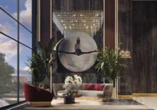 Просторное гранд-лобби с высотой потолка 7м. Дизайн Гранд Лобби выполнен в стиле классических люксовых отелей с использованием премиальных материалов.