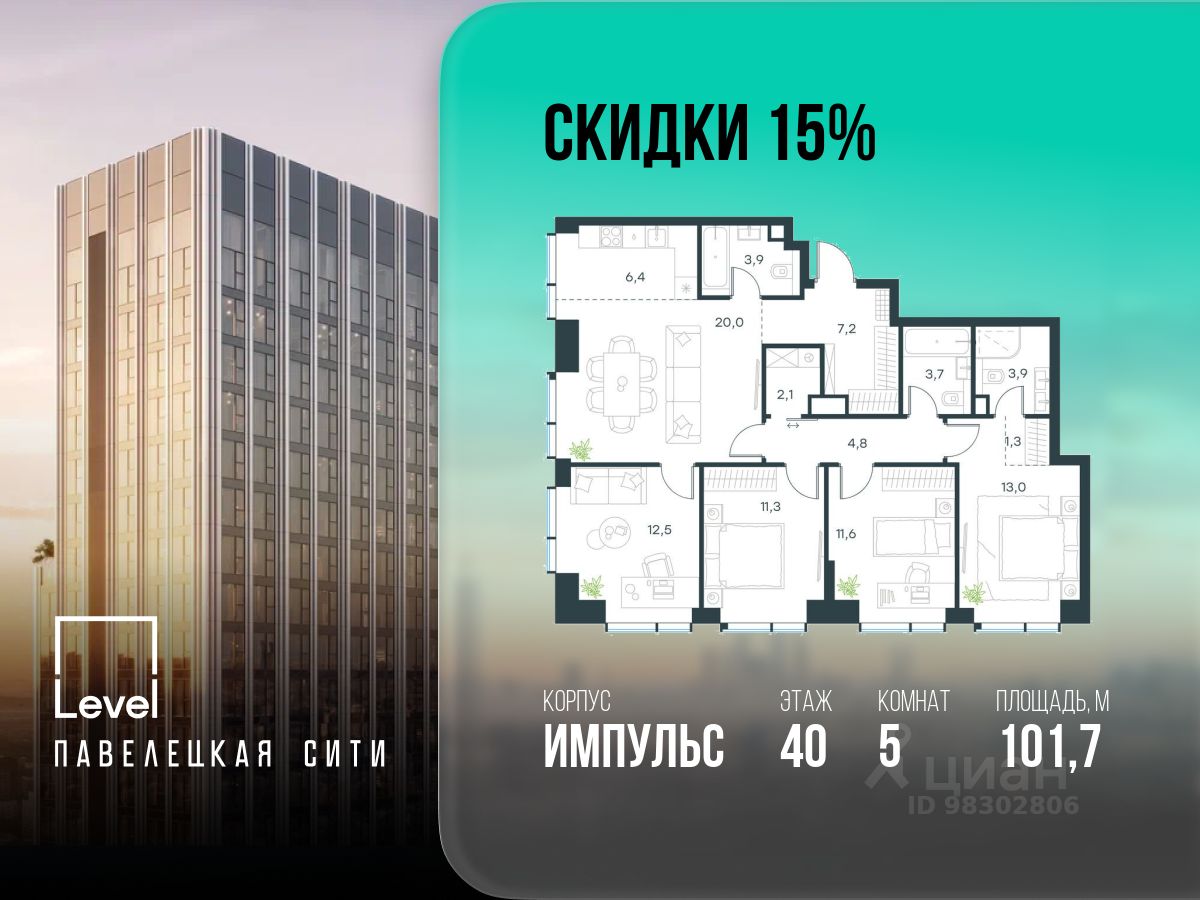 В Даниловском районе столицы (ЮАО) продаётся многокомнатная квартира площадью 101.70 кв.м без отделки. Квартира расположена на 40 этаже 45-этажного корпуса 'Горизонт' в жилом комплексе бизнес-класса Павелецкая Сити. Высота потолков 3.00м.