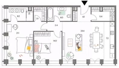 Квартира с дизайнерским ремонтом, что делает данный лот еще привлекательнее. Площадь кухни-гостиной составляет 36 квадратных метров, что дает комфортную зону для готовки и семейных ужинов. В квартире есть два совмещенных санузла, а окна выходят как во двор, так и на улицу.