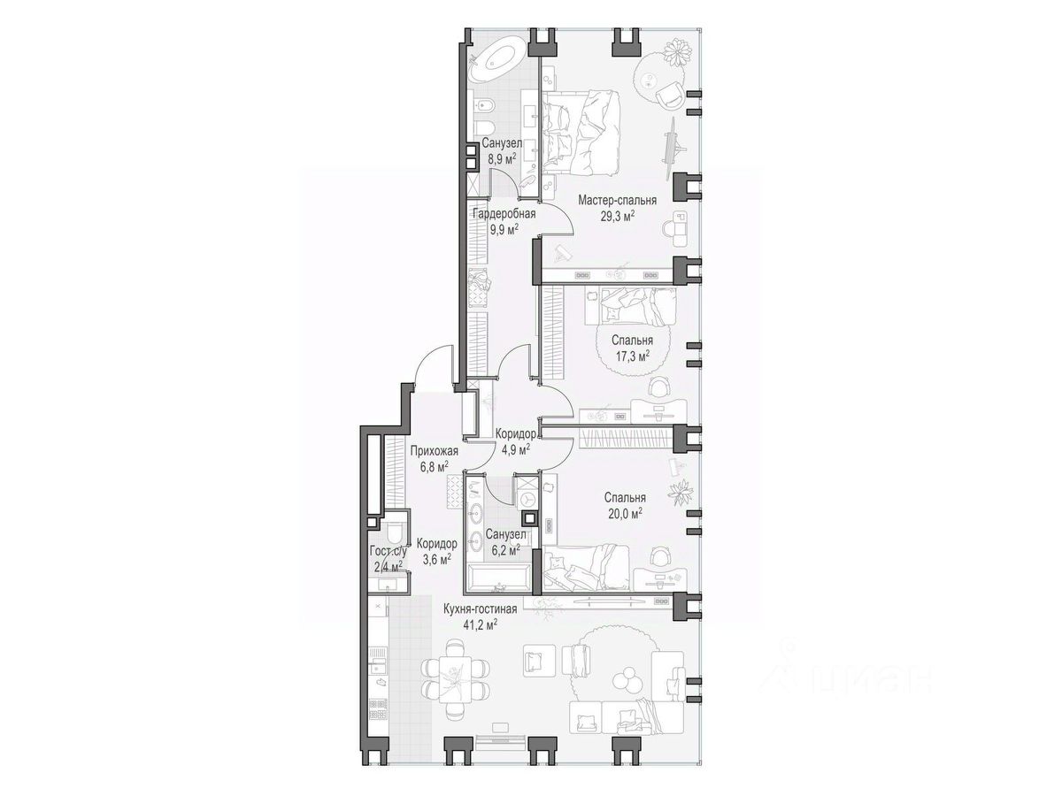 Просторная квартира площадью 151,3 кв. м. Из кухни-гостиной (41,2 кв. м) открывается панорамный вид на красивый двор-парк с ландшафтным дизайном и вечерней подсветкой. Продуманная планировка позволяет разместить три приватные спальни, в одной из которых, примыкающей к мастер-спальне, предусмотрен санузел с окном, что делает ваше личное пространство по-настоящему комфортным. Окна выходят на три стороны.