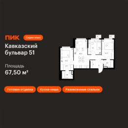 Продаётся 3-комн. квартира площадью 67,5 кв.м на 6 этаже 23 этажного дома (Корпус 3.2, Секция 2) проекта ПИК Кавказский бульвар 51. Светлый просторный подъезд на уровне земли, функциональная планировка, большие окна, c отделкой.